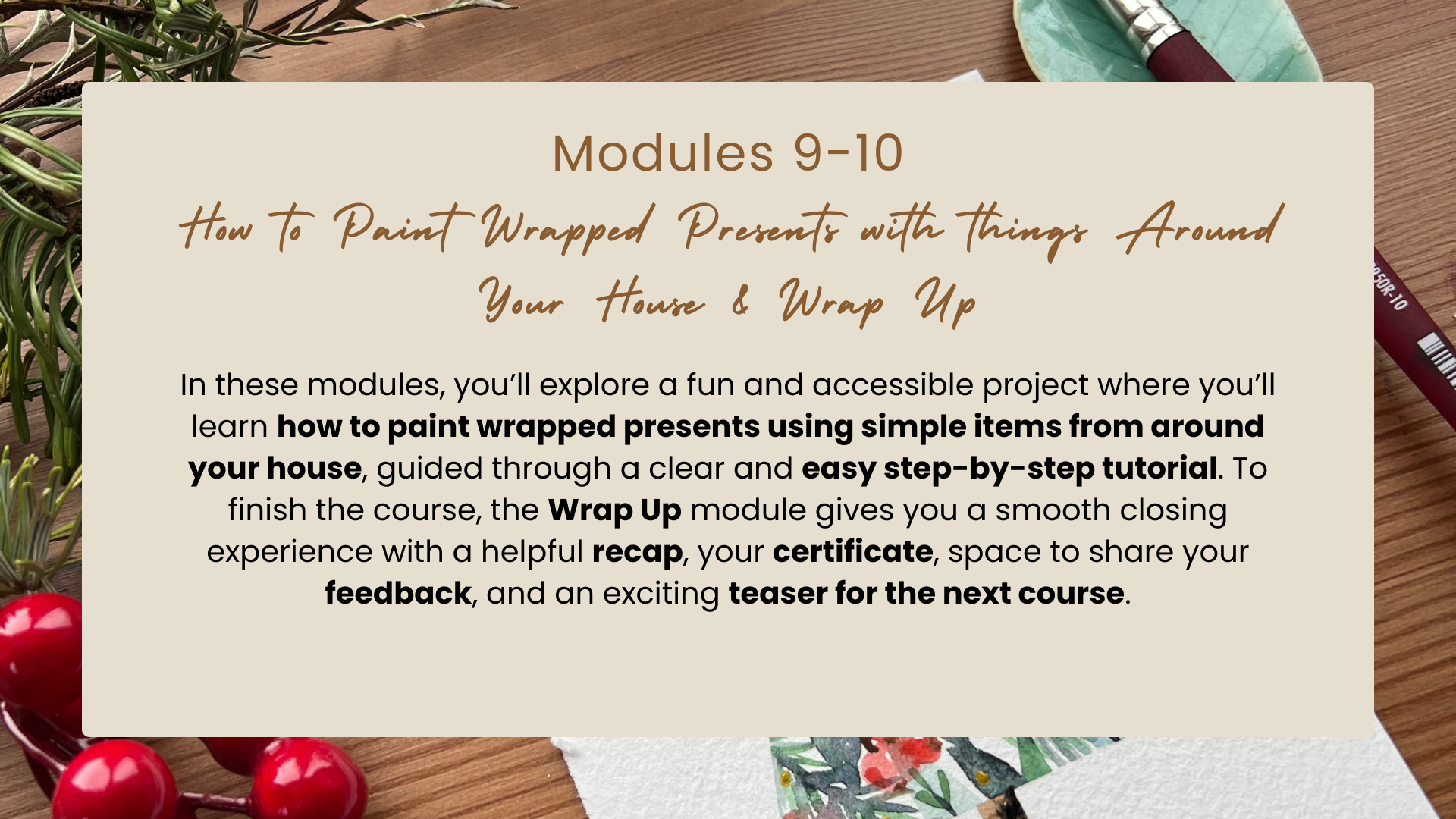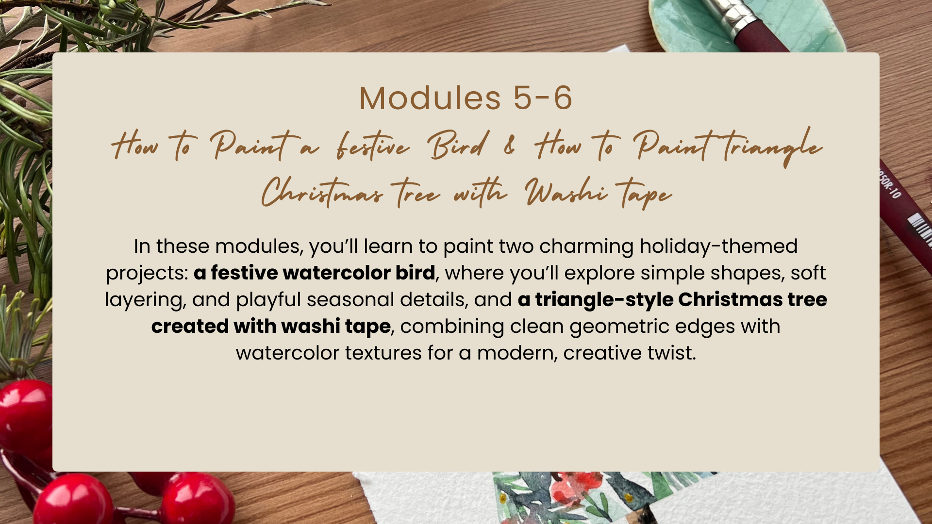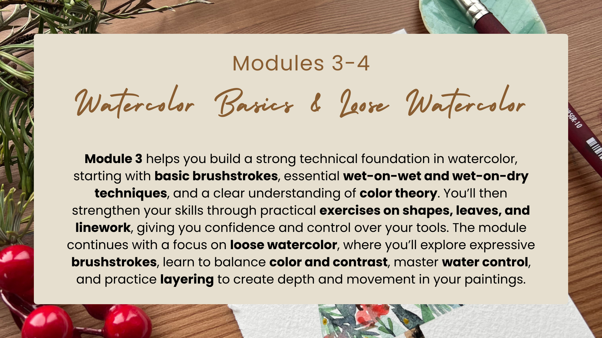 You’ll build strong watercolor foundations, mastering brushes, watercolors, and essential techniques that make painting feel natural and effortless.